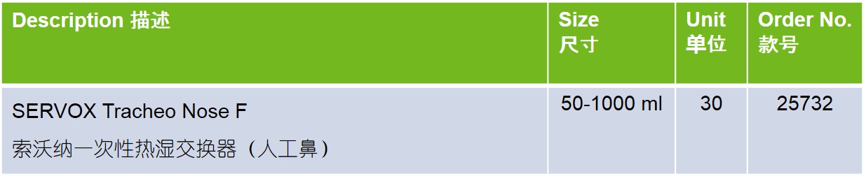 SERVOX® Tracheo Nose F I 一次性使用热湿交换器(人工鼻)